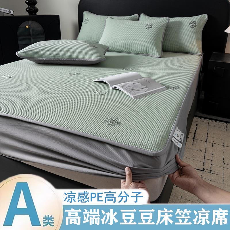 夏季A类床笠款冰丝席冰豆豆凉席床单三件套可机洗空调席软席凉垫.