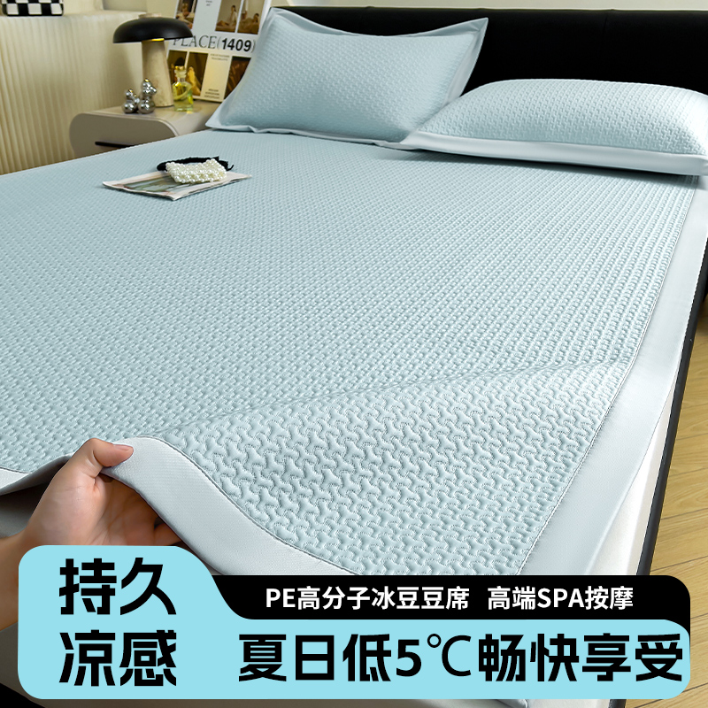 夏季冰丝冰豆豆凉席三件套可机水洗凉感人儿童学生折叠空调夏天席