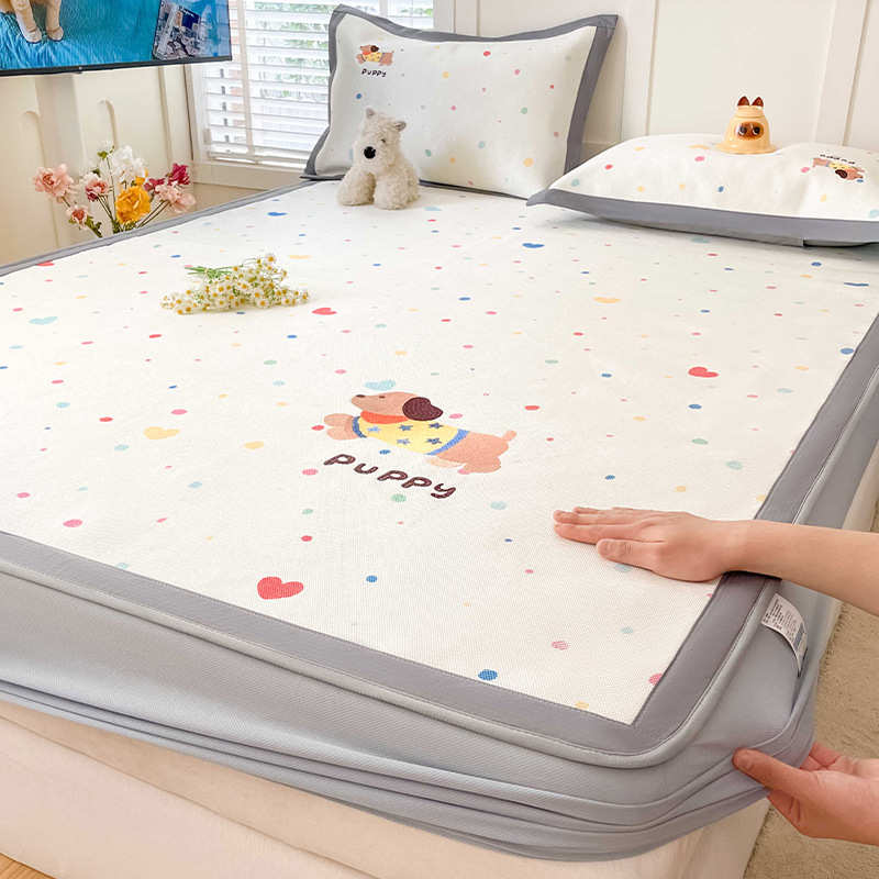 E0PB批发夏凉感冰豆豆防刮划冰丝凉席三件套可折叠机洗床笠款空调