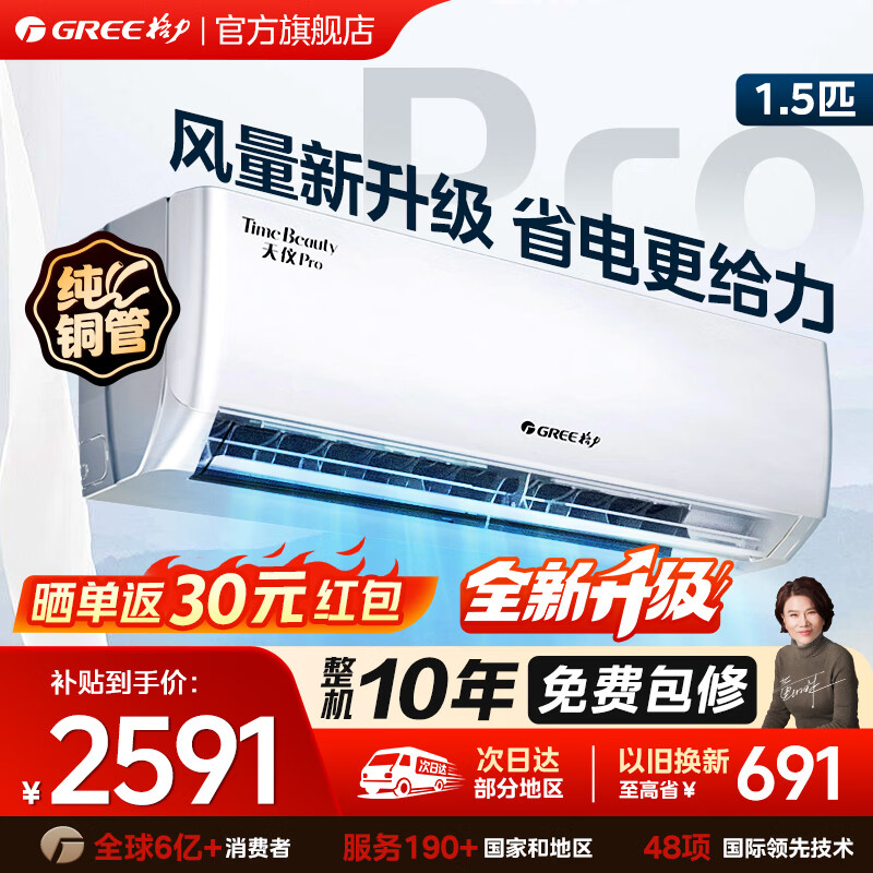格力(GREE)出品 晶弘空调 小凉神 纯铜管 节能省电 新一级能效变频冷暖 卧室省电挂机 性价比神机 换新补贴 小凉神 1.5匹 质好价优
