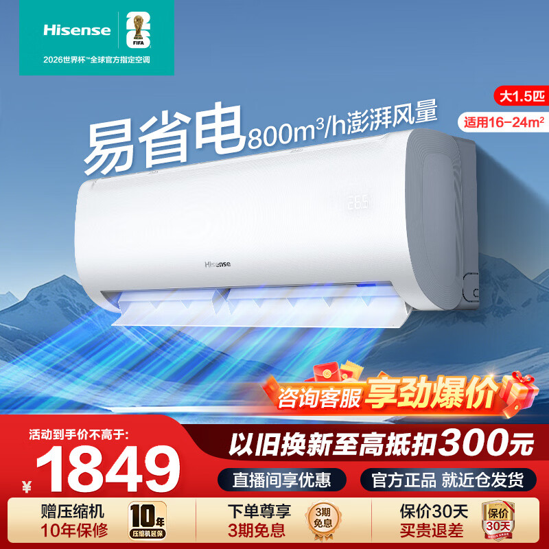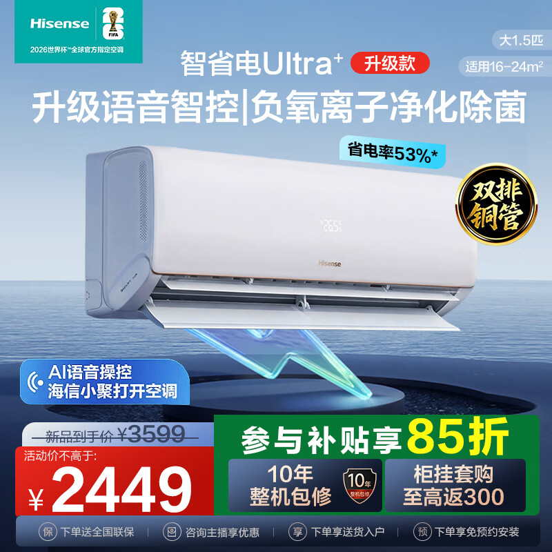 海信(Hisense)大薄荷空调挂机 大1.5匹 智省电Ultra 超一级能效 舒适双导板 变频S架构 以旧换新 智省电 大1.5匹 一级能效大薄荷ultra+