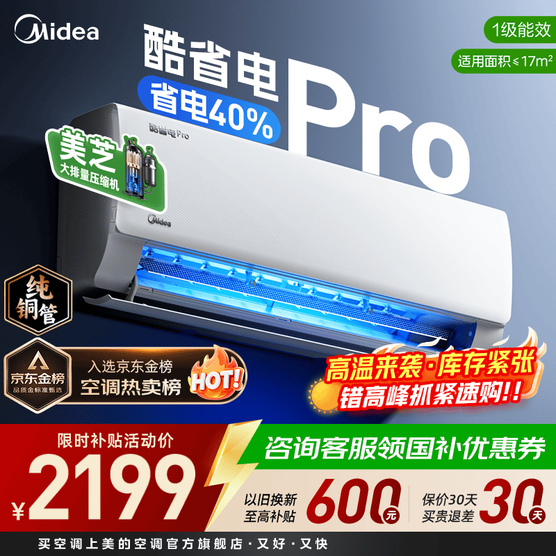美的(Midea)美的空调1匹/1.5匹挂机 酷省电一代/二代系列变频冷暖新一级能效节能省电 以旧换新 官方旗舰店 酷省电Pro 大1匹 省电40%