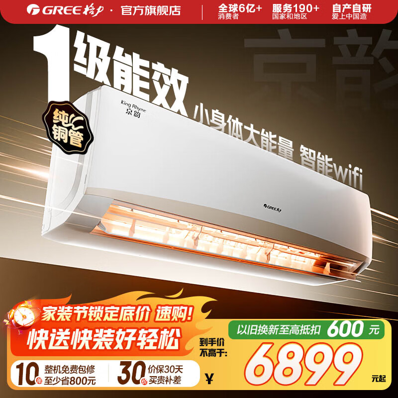 格力(GREE)空调 京韵 新能效 变频冷暖 高温自清洁 智能WIFI 家用壁挂式客厅挂机 家电以旧换新 京韵 新一级能效 3匹 大挂机
