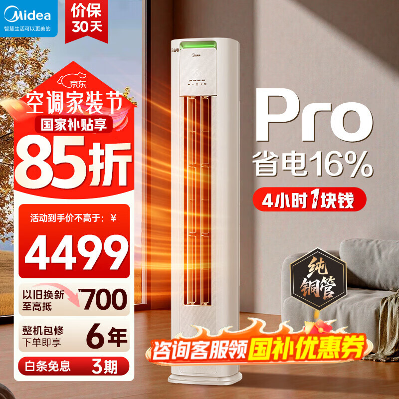 美的(Midea)酷省电3匹新一级能效PRO变频冷暖 客厅空调柜机立式 APP 独立除湿 升级款 国家补贴 以旧换新 酷省电 大2匹 一级能效 酷省电PRO柜机