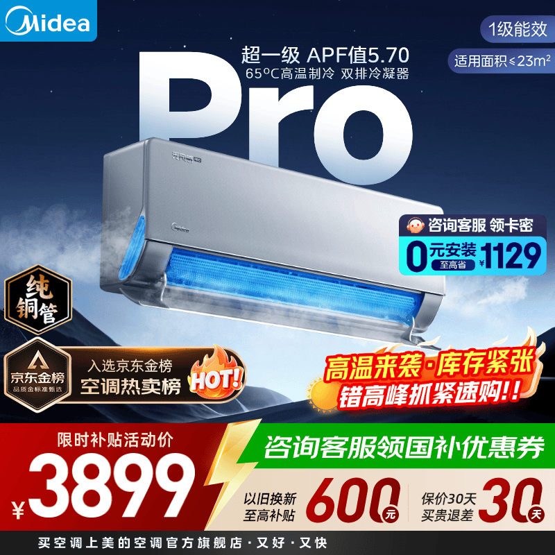 美的(Midea)2025年新品 大1.5匹无风感母婴级净护 超一级能效 家用卧室挂机 国家补贴空调 空调官方旗舰店 无风感Pro 大1.5匹 百档精细控风·双排铜管
