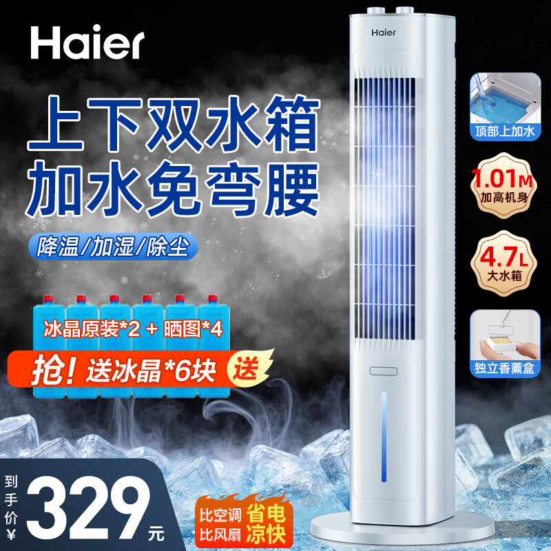 海尔(Haier)空调扇冷风扇加湿降尘加水降温家用节能冷风机无叶风扇制冷机卧室水冷塔扇冷气机冷气扇移动小空调 免弯腰上水箱加水/机械款HFZ-J8627A