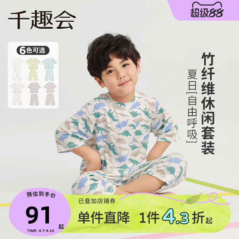 【竹纤维】千趣会童装儿童夏季家居服套装男女童舒适空调服睡衣