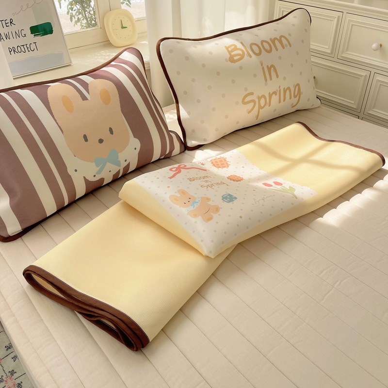 春日花兔软糯牛奶凉感丝凉席二三件套少女心裸睡空调软席学生凉席
