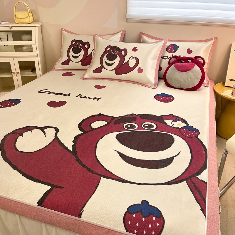 夏季A类卡通冰丝凉席三件套 少儿学生宿舍空调软席子可水洗冰藤席