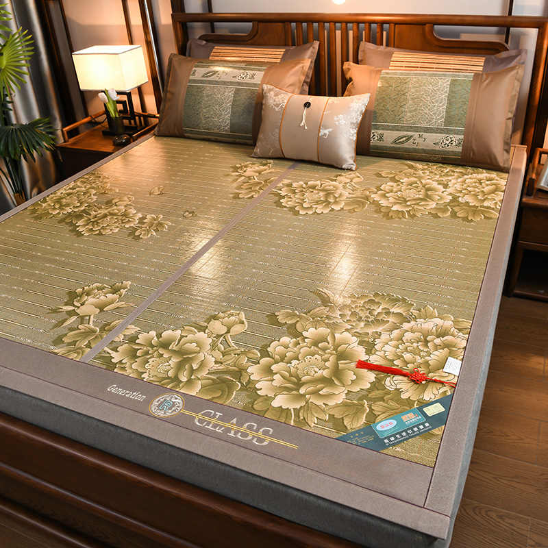 奢华夏季正反两用凉感印花竹席空调席G三件套双人亲肤可折叠可裸