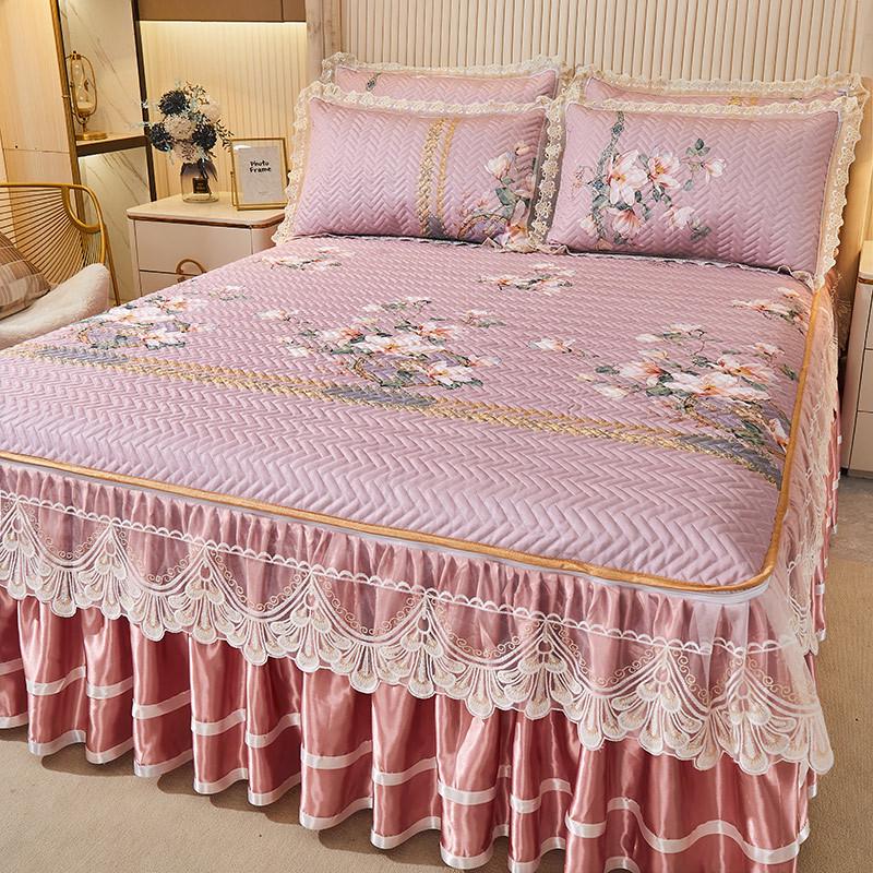 夏季高端A类乙纶冰豆豆凉席床裙三件套公主风冰丝席可机洗空调席