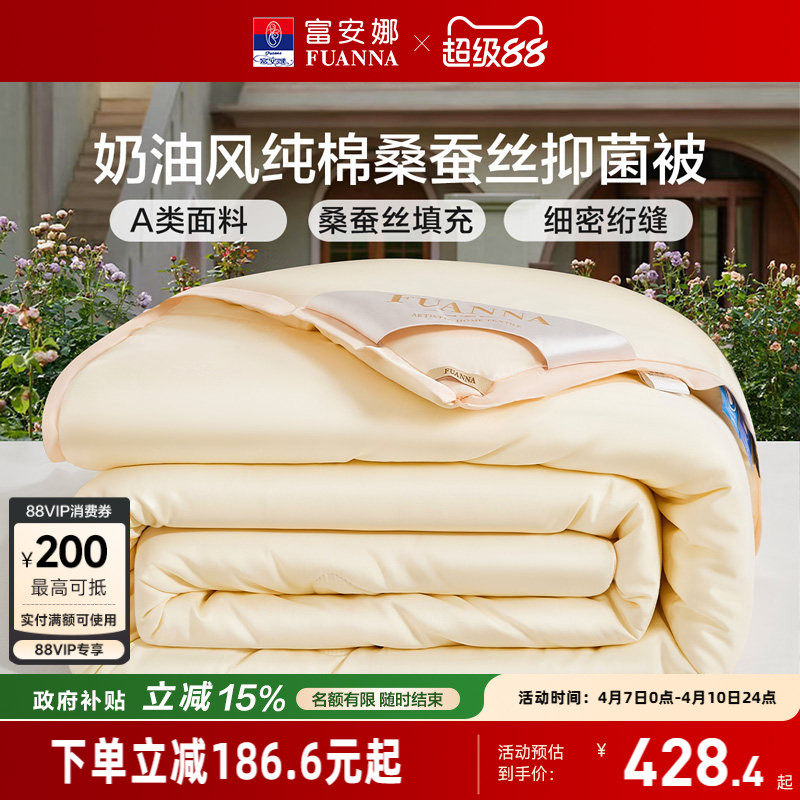 富安娜被子60S纯棉冬被桑蚕丝被空调被春秋被二合一结婚被芯新品
