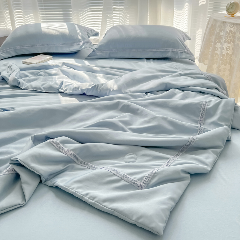 韩式公主风夏凉被四件套花边夏季空调被非全棉可机洗薄被芯子
