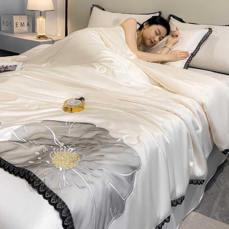 轻奢高级感夏季冰丝夏被四件套可机洗夏天空调被薄被子春秋夏凉被