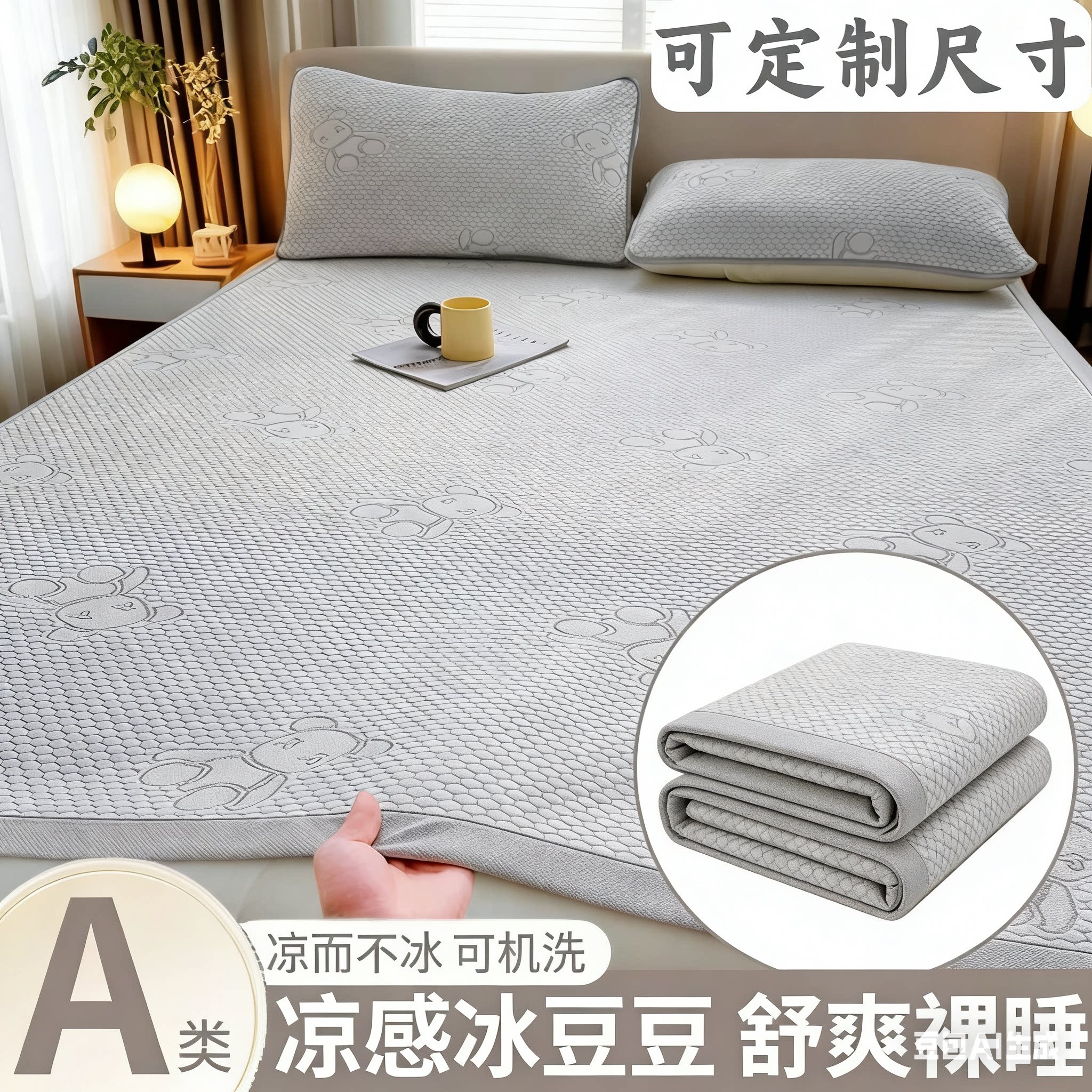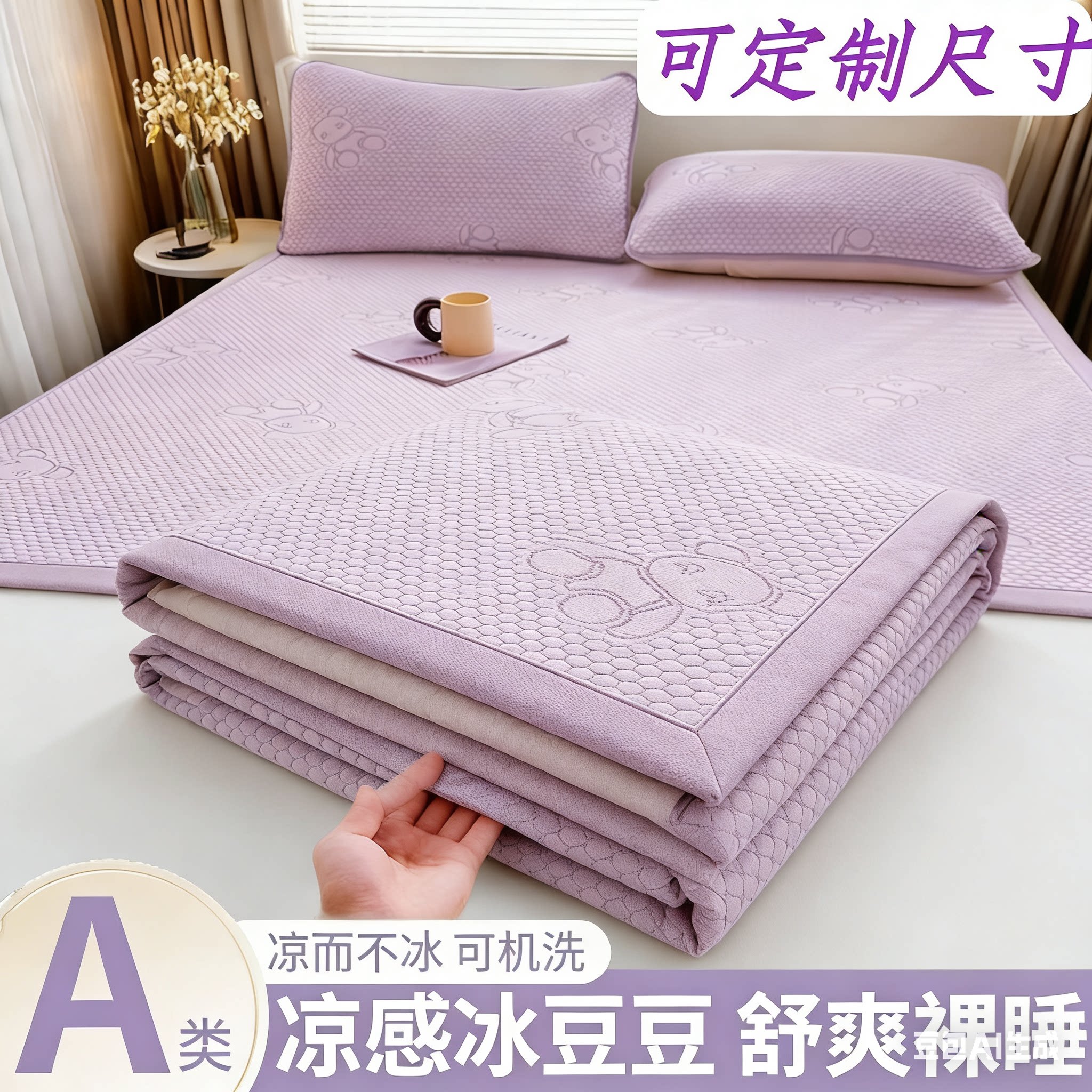A类卡通小熊冰豆豆凉席夏季凉感冰丝席三件套2025新款可机洗空调3