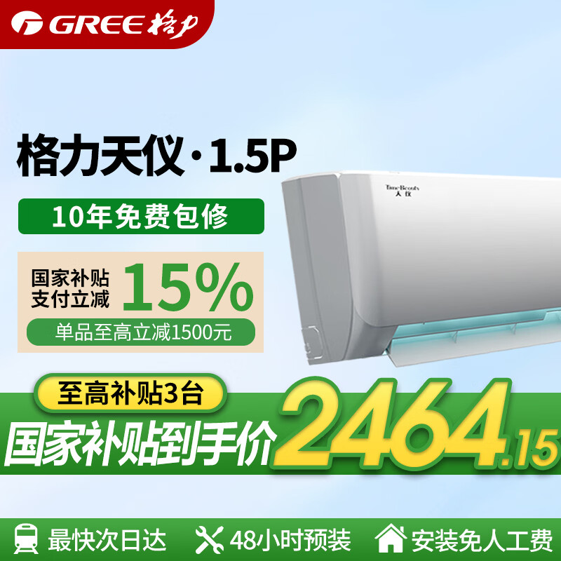格力(GREE)空调挂机1.5匹天仪新一级能效1.5匹/1匹变频冷暖家用卧室绿色低碳智能除霜空调 1.5匹一级能效 性价比之王 天仪挂机