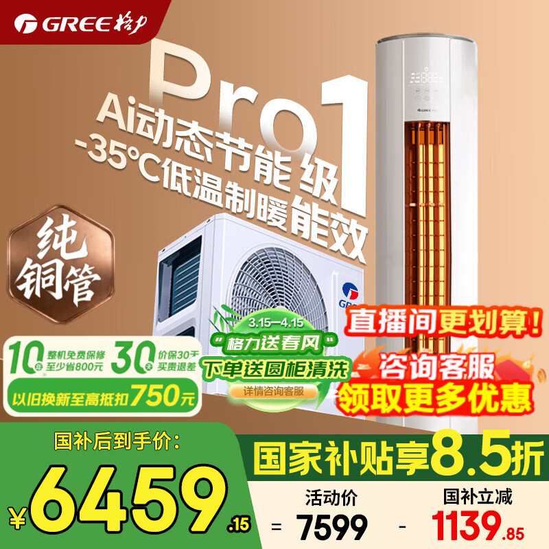 格力空调 云佳pro/云锦三代 3匹 新一级能效 变频冷暖 纯铜管 家用省电客厅立式空调柜机 家电国家补贴 3匹 云佳Pro AI动态节能 性价比爆款【悦省电同款】
