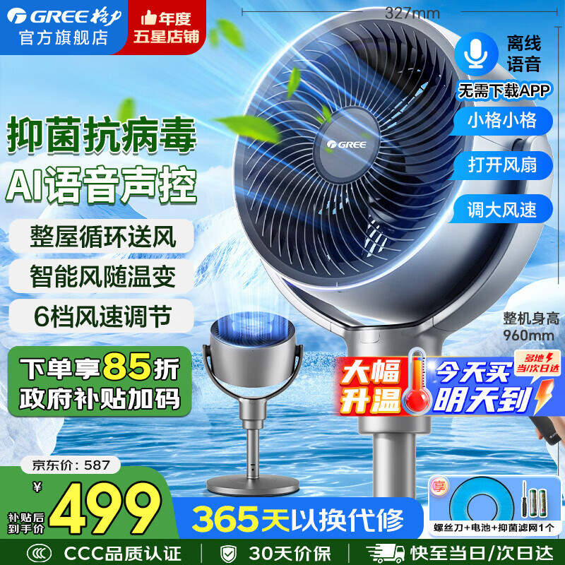 格力(GREE)电风扇家用空气循环扇直流变频落地扇台式桌面小风扇智能遥控定时电扇办公卧室客厅排气扇空调伴侣 FXDZ-2072Bvg3(语音智控+抑菌抗病毒)