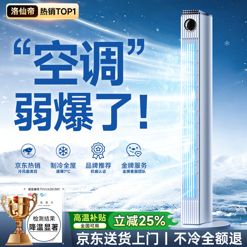 洛仙帝空调扇冷风电风扇制冷无叶塔扇机静音落地扇家用客厅立式宿舍智能卧室 【70cm升级】0~30㎡快速降温