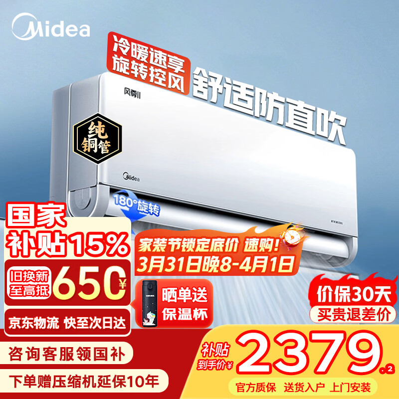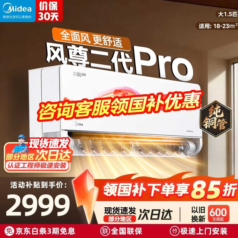 美的(Midea)空调挂机风尊二代Pro大1.5匹 新一级能效 变频节能冷暖两用壁挂式卧室空调防直吹APP智控 以旧换新 风尊二代 大1.5匹 舒适防直吹 180°控风