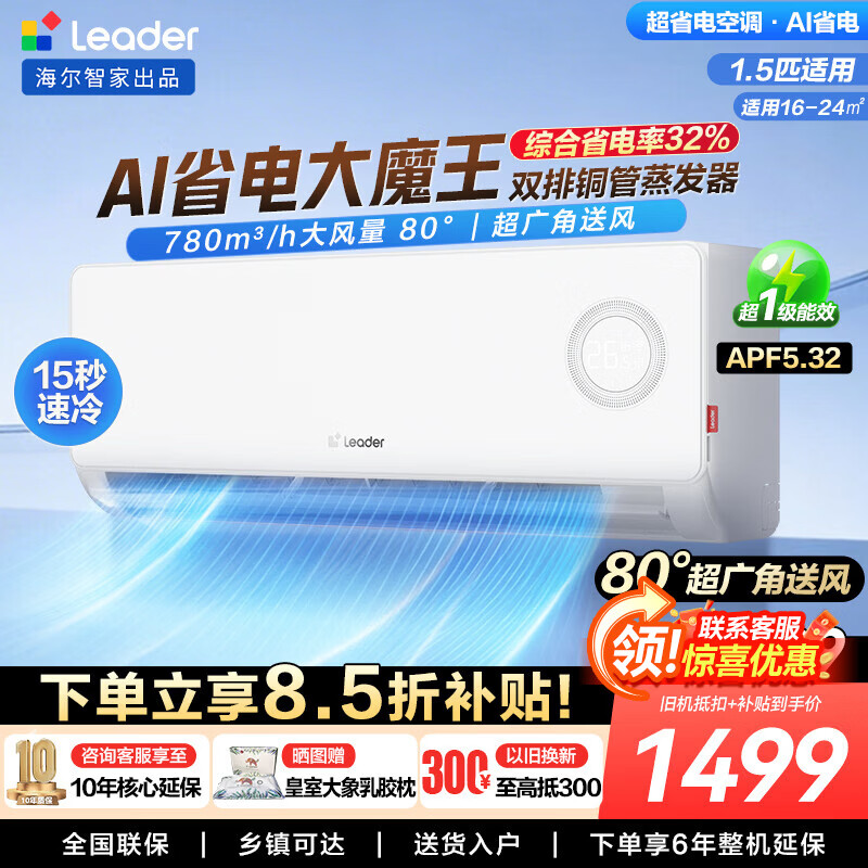 海尔(Haier)出品统帅空调挂机1匹/1.5匹新一级能效变频冷暖壁挂式家用空调自清洁防直吹家电补贴15% 超省电 1.5匹 全链路AI省电超一级能效35LPA1