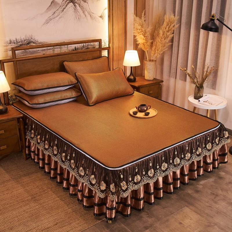 欧式床裙藤席三件套可脱卸冰丝凉席可折叠空调软席夏季床罩席子2m
