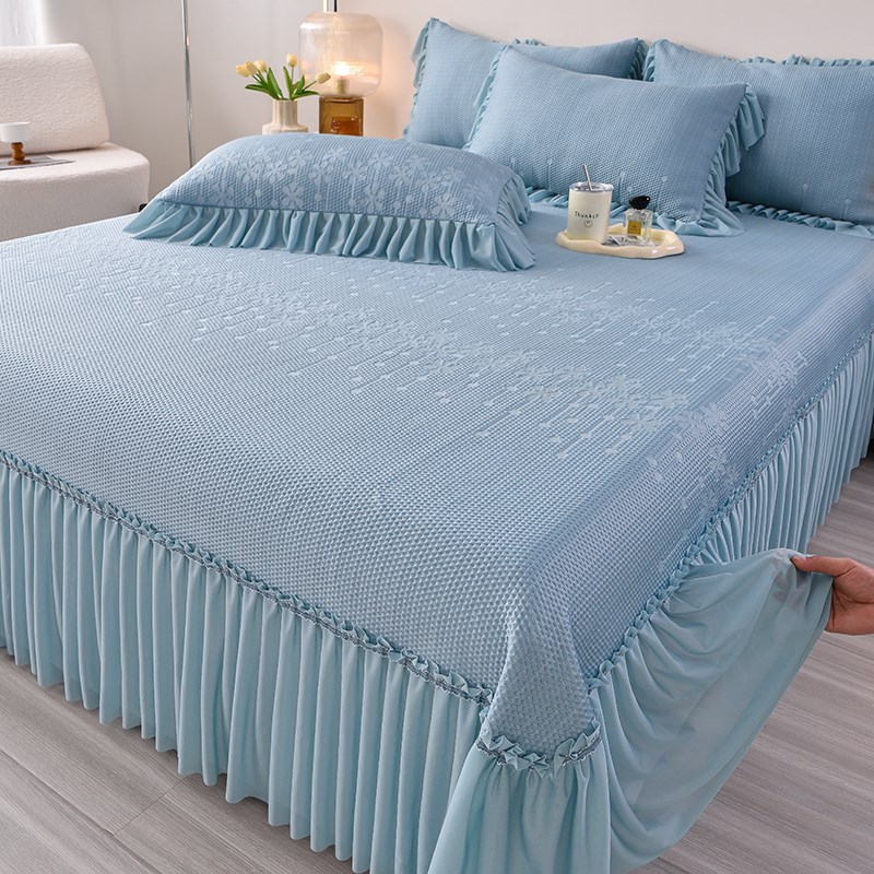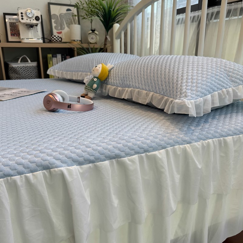 2025新款凉感冰丝豆豆凉席三件套床裙款床罩夏季空调席软垫席夏天