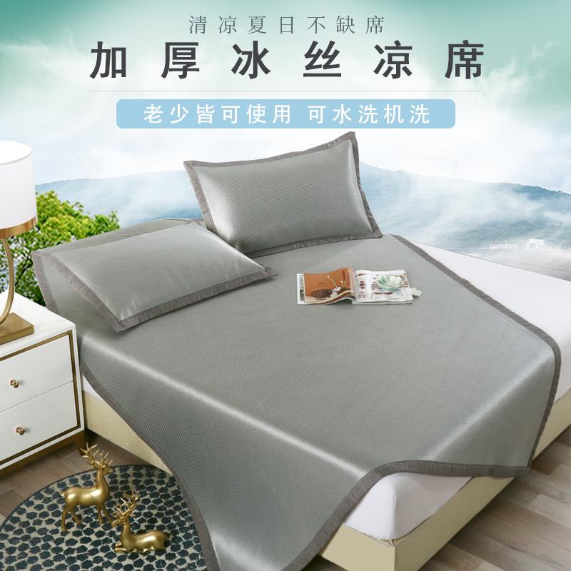 夏季冰丝凉席三件套1.5家用双人1.8床可水洗折叠学生宿舍空调软席