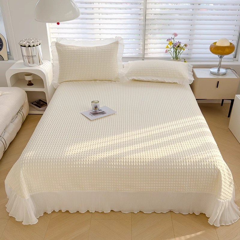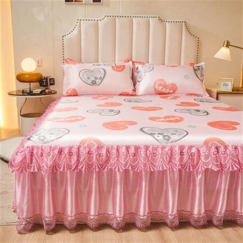 夏季冰豆豆冰丝凉席三件套2025新款公主风床裙款可机洗空调软席子
