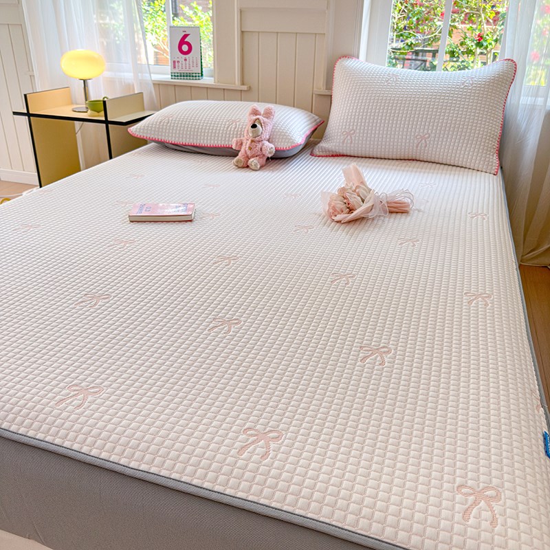 夏季冰肌凉感凉席三件套少女心蝴蝶结提花床笠款可水洗空调软席