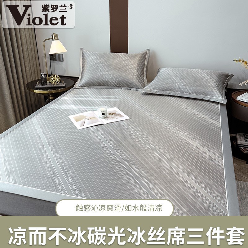 紫罗兰可水洗碳光冰丝凉席三件套夏季折叠床笠款宿舍空调席夏凉席