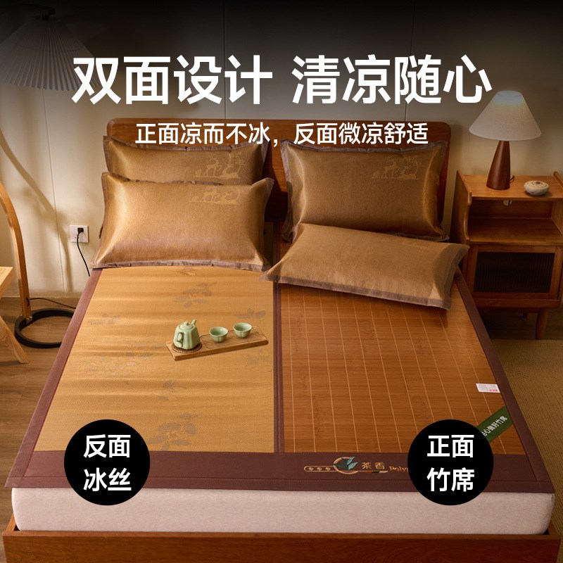 夏季冰丝凉席2025新款冰丝席床上三件套可机洗草席单人空调软席子