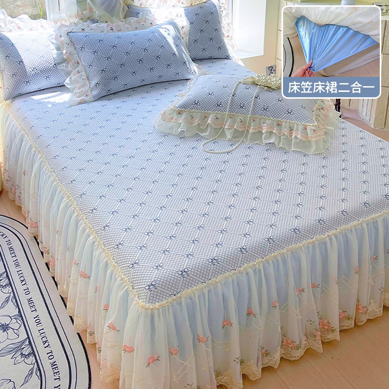 凉感豆豆凉席床裙款三件套夏季冰丝软席子空调凉席可机洗夏天席子