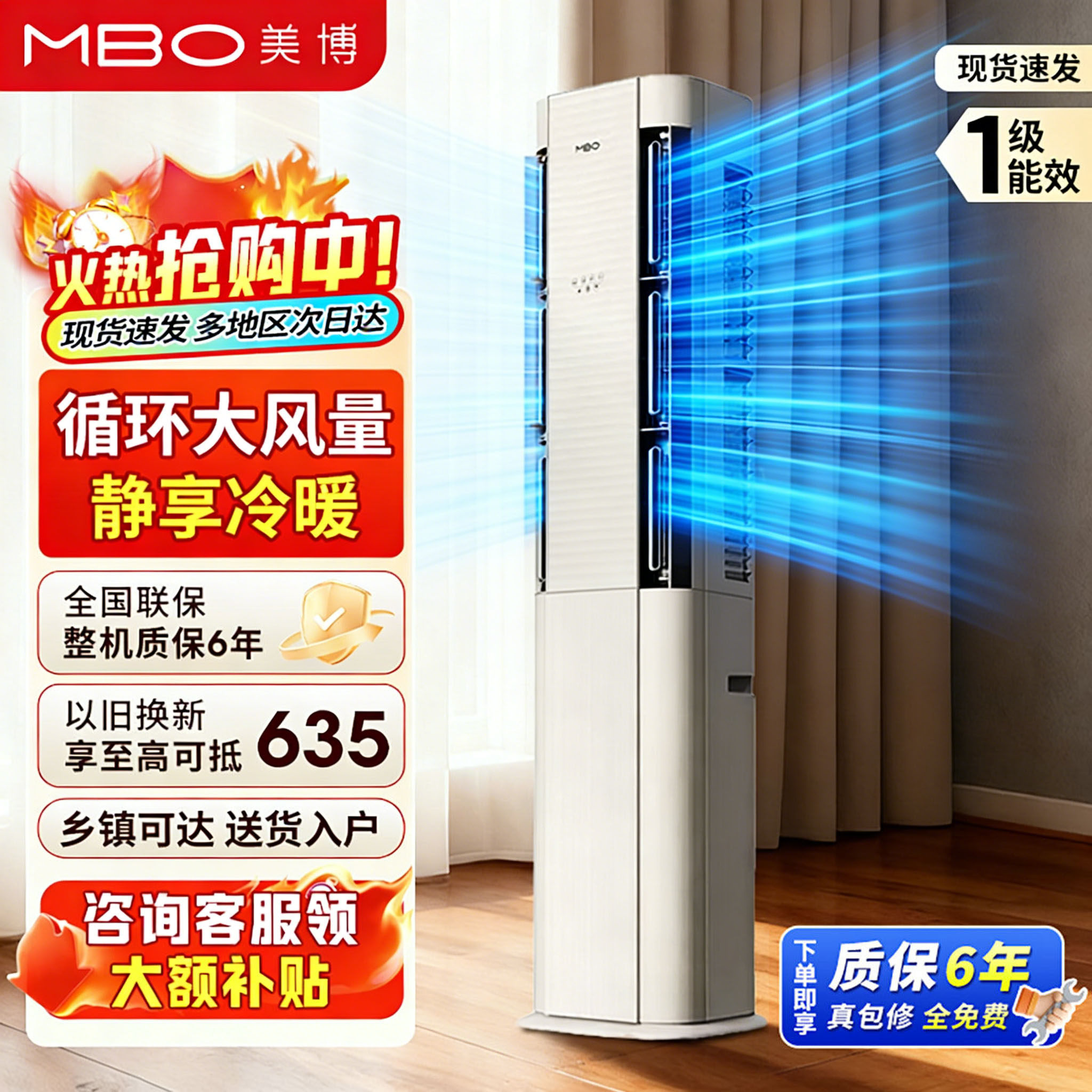 mbo美博大2匹新一级能效变频空调大3匹柜机冷暖两用家用客厅卧室