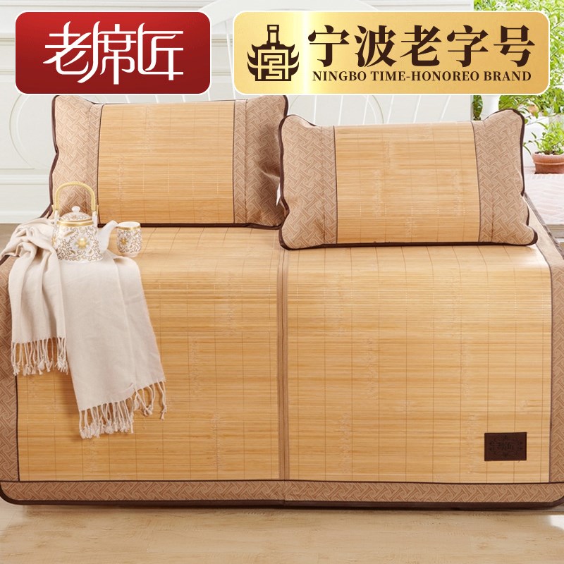 老席匠高档竹席 加厚凉席折叠双面1C.5米单双人空调草席子冬夏两