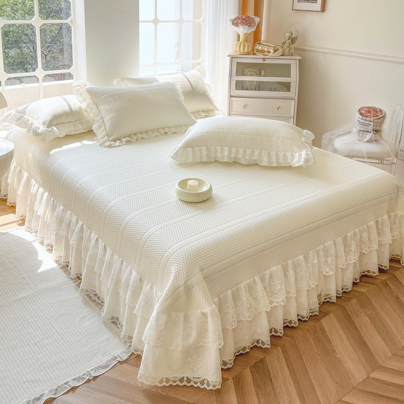 公主风夏季小清新冰丝凉席三件套可机洗蕾丝花边空调软席子1.8m床