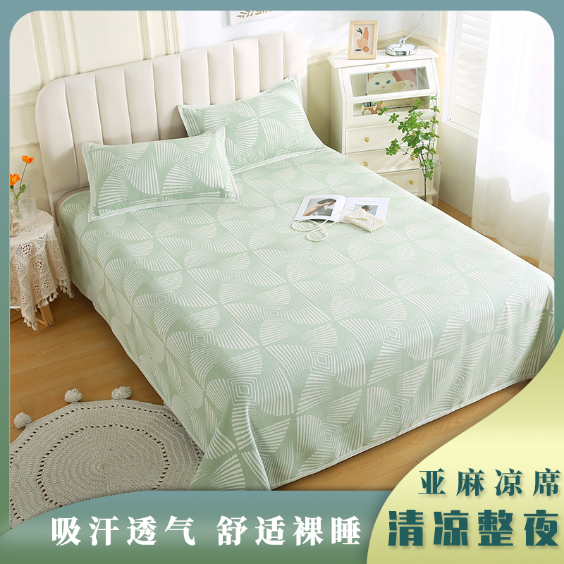 夏季纯亚麻凉席三件套家q用1.8米床单双人软凉席可机洗空调软席子
