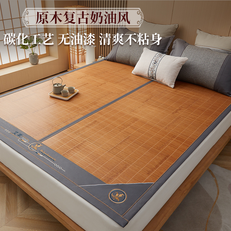 原木色复古奶e油风竹席凉席夏天空调席竹藤双面碳化竹凉席光滑凉