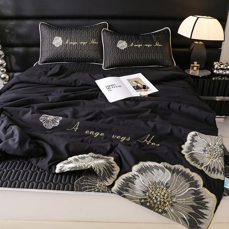 夏季黑色水洗真丝绸冰丝空调被夏凉被乳胶凉席床笠款夏被四件套