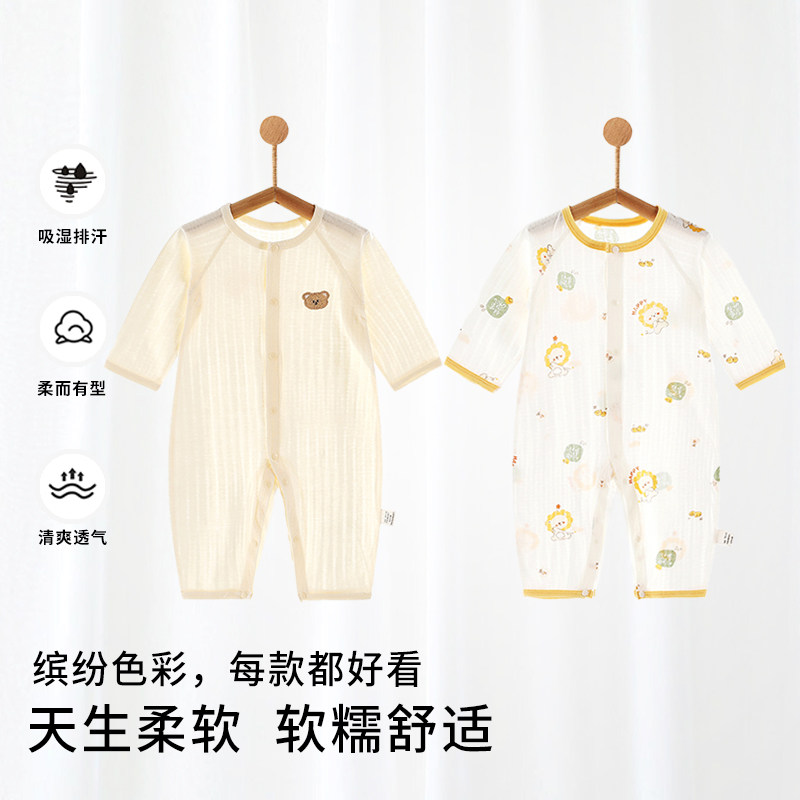 婴儿莫代尔夏季连体衣服宝宝薄款长袖空调服凉感哈衣爬服睡衣家居