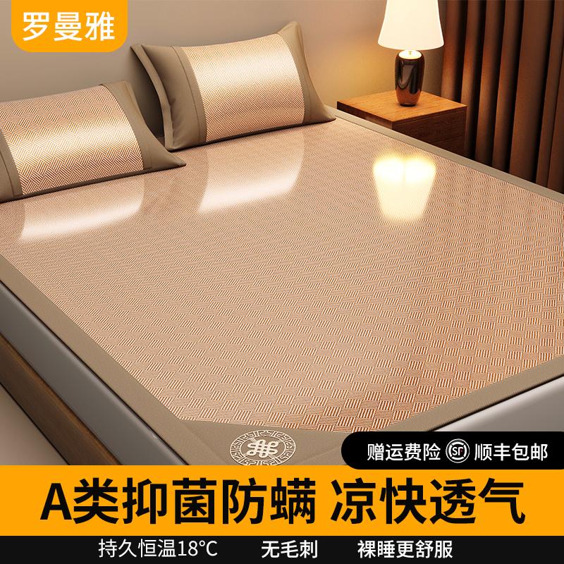 夏季冰丝凉席2025新款冰丝席床上三件套可机洗草席单人空调软席子