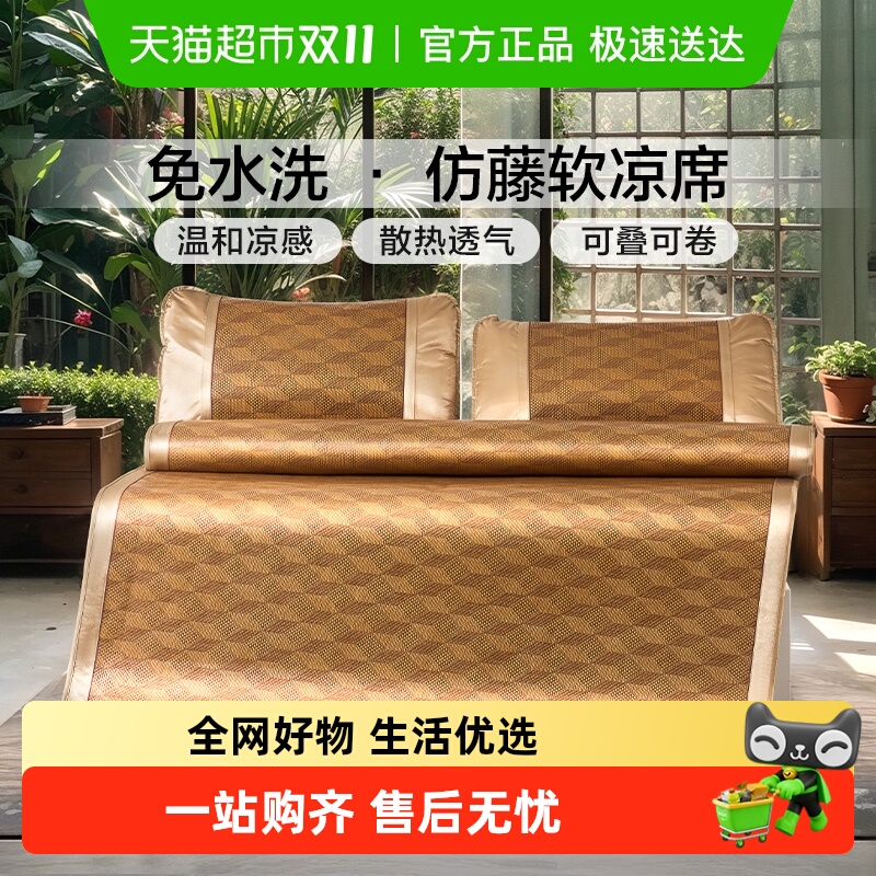 富安娜凉席夏季藤席2025新款家用可折叠空调软席子双面夏天藤席
