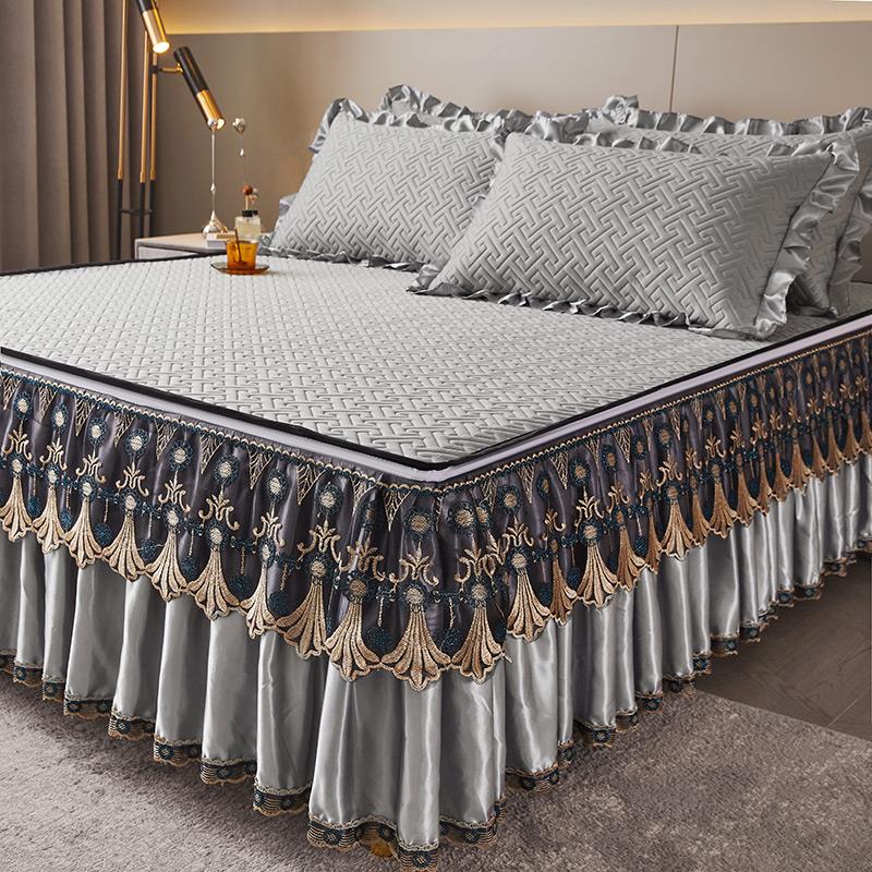 夏季加厚乳胶冰丝凉席三件套床裙款高端绣花床罩可机洗空调软席子