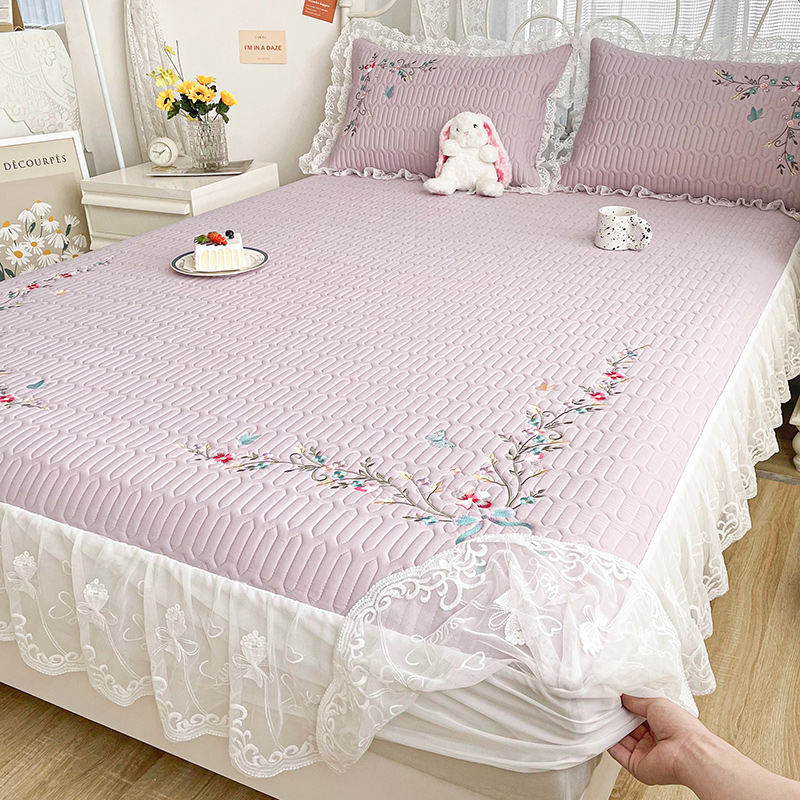 A类紫色乳胶凉席三件套冰丝空调软席花边床笠款床罩床裙款二合一