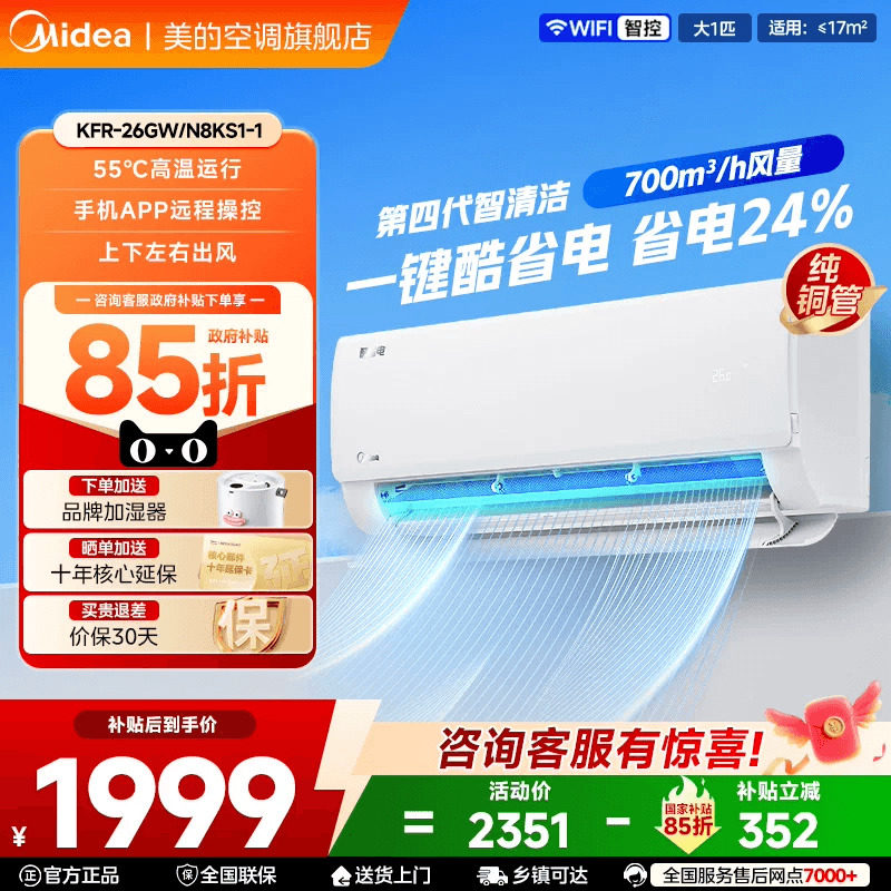 【新品首发】美的空调酷省电二代大1P1.5匹一级变频挂机KS2旗舰店