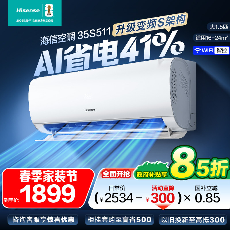 海信空调大1.5匹1匹省电家用挂机一级以旧换新补贴官方旗舰店