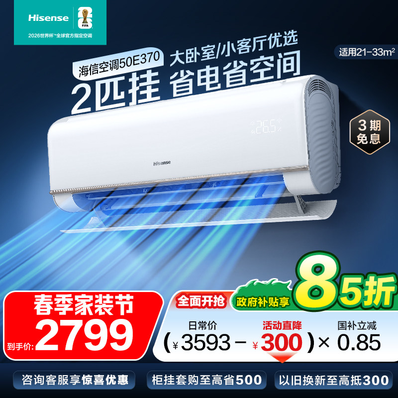 海信官方大2匹3匹省电空调挂机家用一级能效挂式以旧换新补贴