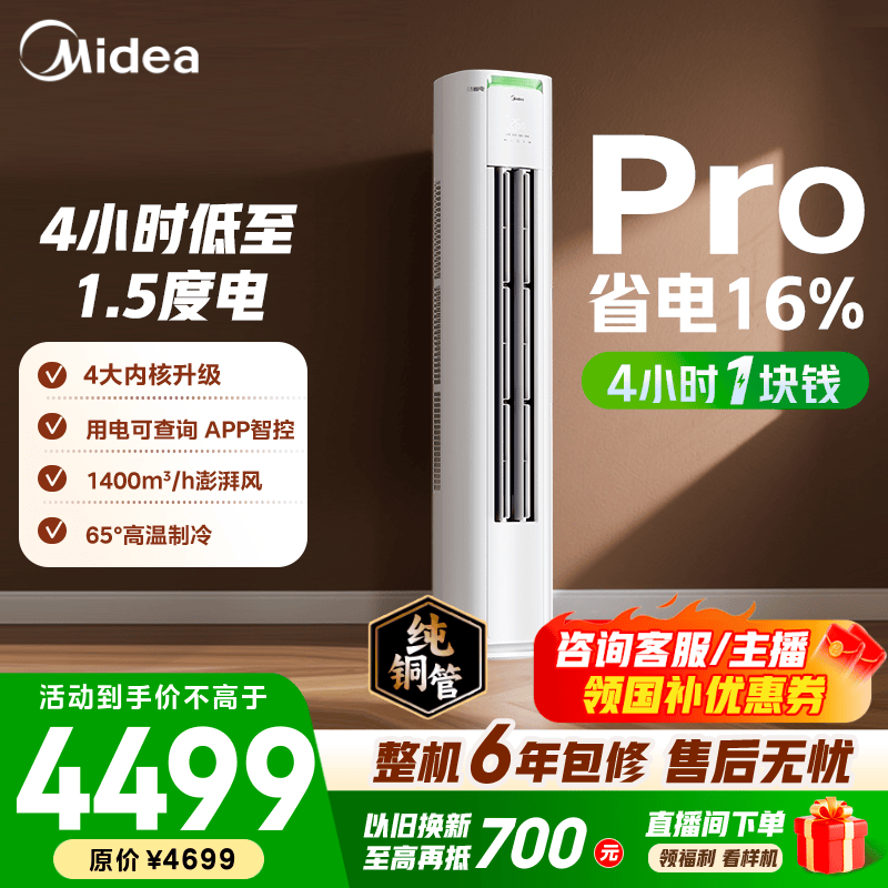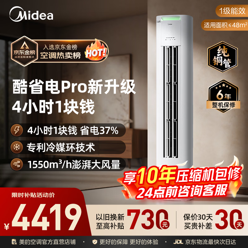 美的(Midea)酷省电Pro立柜空调 2匹/3匹客厅立式柜机 一级能效节能省电 变频冷暖智能家用 以旧换新国家补贴 酷省电Pro 大3匹 4小时1块钱·省电37%