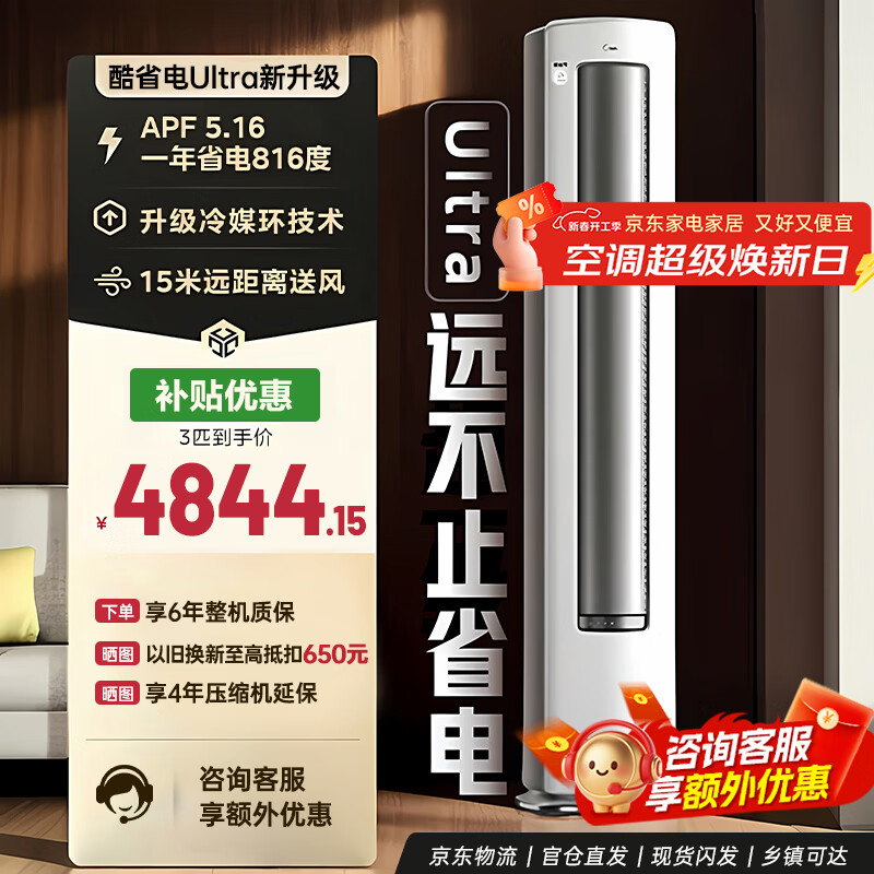 美的空调立式柜机 酷省电Pro 3匹酷省电Ultra 国家补贴15% 新一级能效 变频冷暖节能省电以旧换新 酷省电Ultra 3匹 【重磅新品】