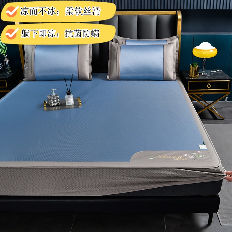 高端夏季冰丝席空调凉席可水洗机洗折叠床单床笠款冰丝席三件套